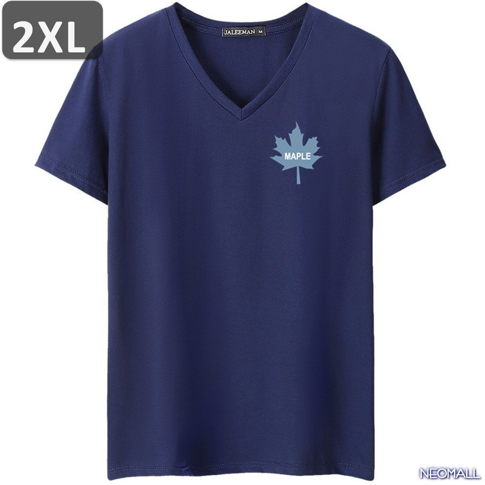 > 夏にピッタリ ☆ Vネック 半袖 Tシャツ【455】 ネイビー 2XLサイズ トップス シャツ シンプル イラスト デザイン 春夏
