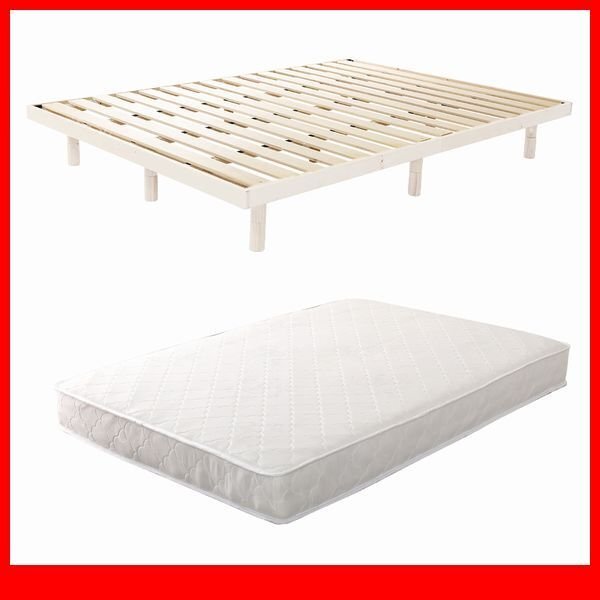 - すのこベッド★ポケットコイルマットレス付 3段階高さ調節 脚付きすのこベッド/ダブル/コンセント付 北欧産パイン材/ホワイトウォッシュ/a4