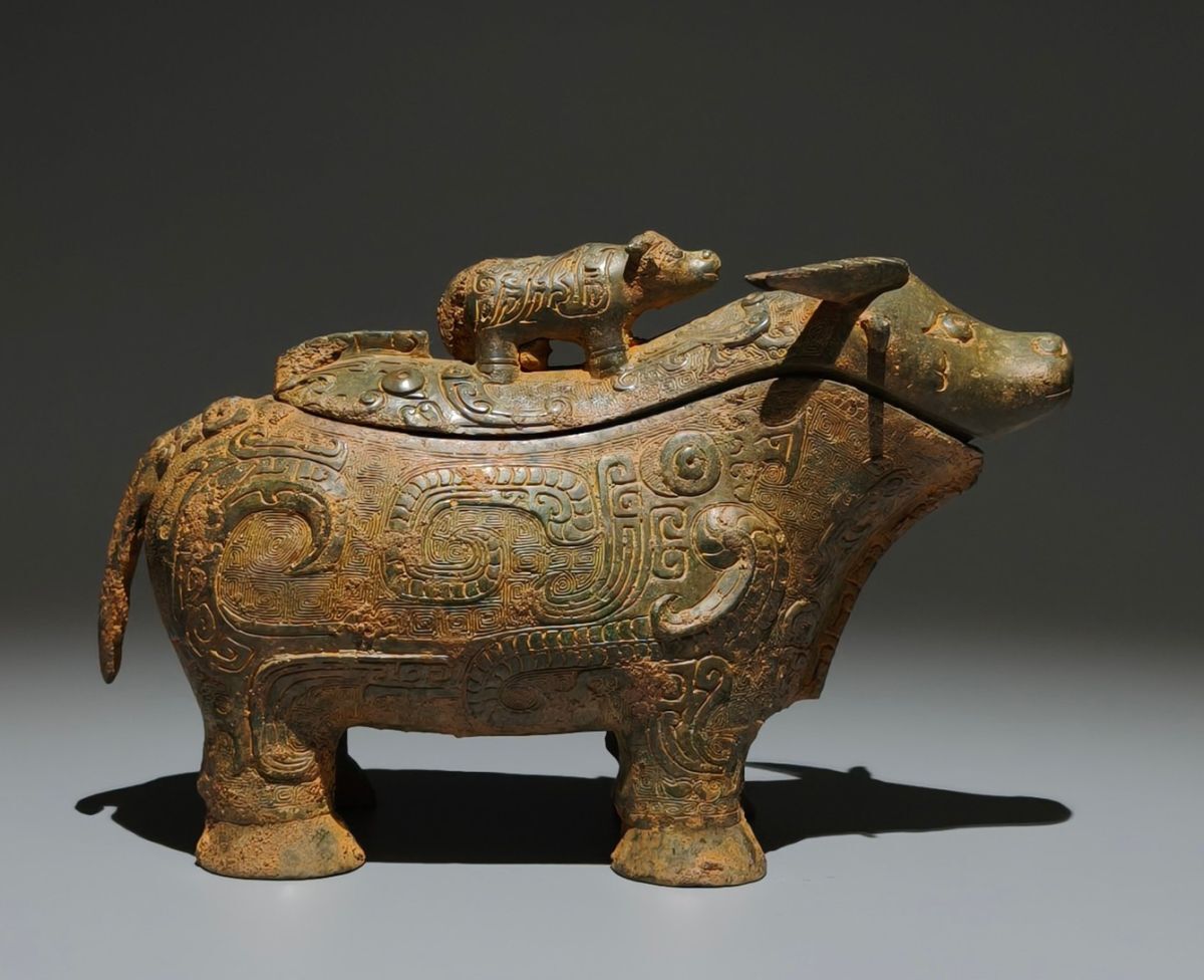 - 永し 商代時期 青銅器 獸面紋牛形盛酒器 銘文 極細工 古銅彫 置物擺件 古美術品 時代物 古董品 収集 骨董品 旧家蔵出 中国唐物 A211