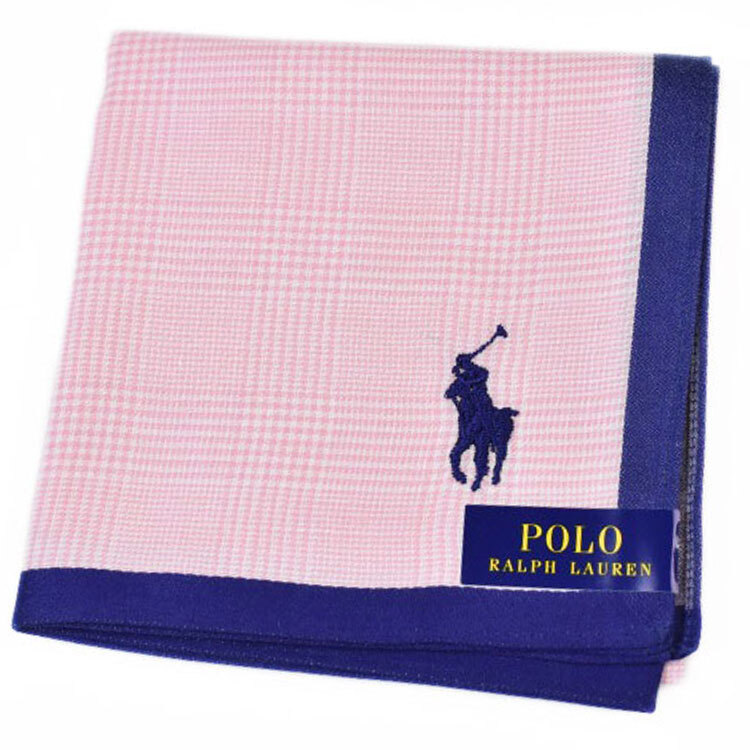 > ポロ ラルフローレン ハンカチ 1枚 メンズ ブランド POLO Ralph Lauren グレン チェック ピンク ロゴ 刺繍 千鳥格子 男性 紳士