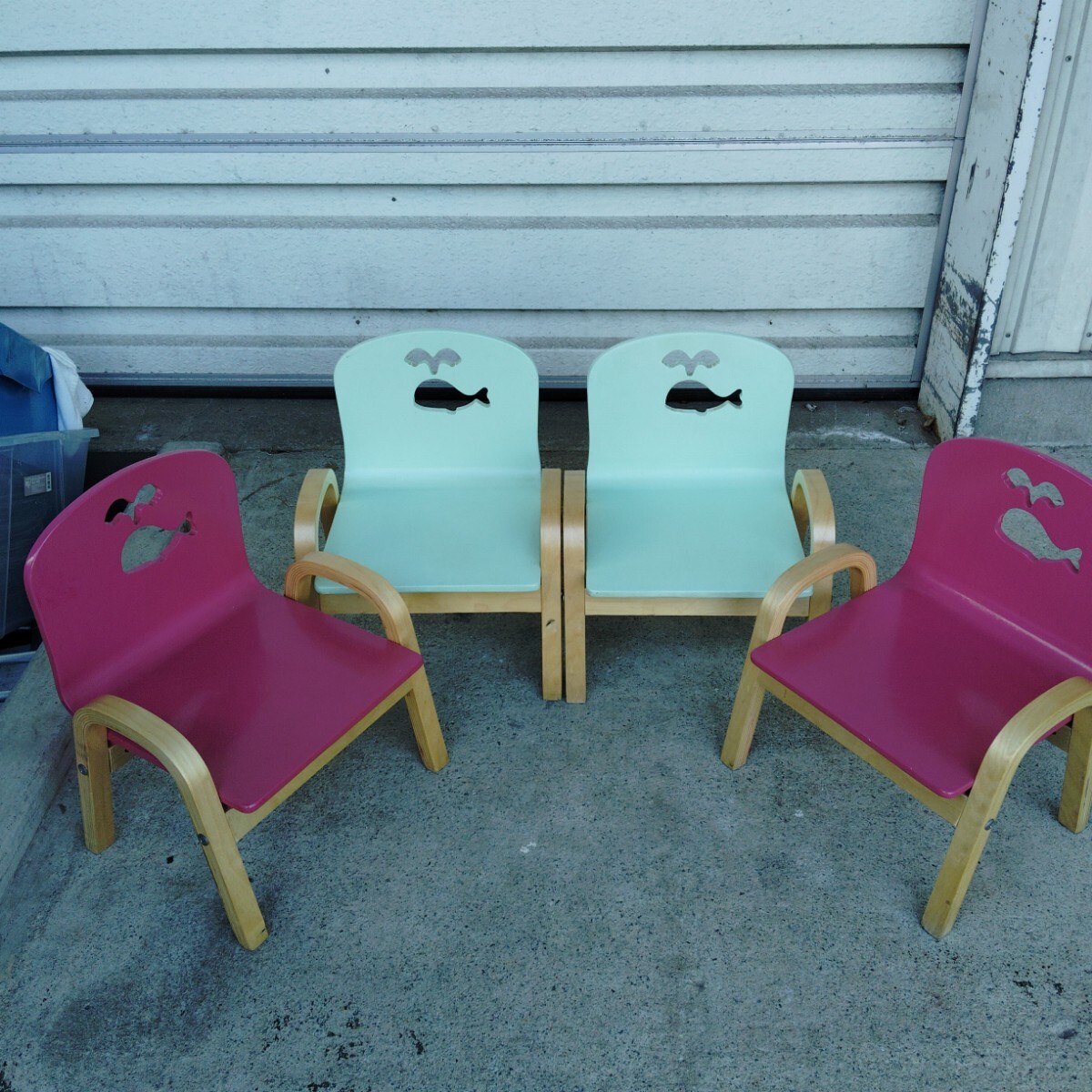 - 木製 クジラデザイン キッズチェア 鯨 ピンク 粉紅 子ども 椅子 ブルー 藍 各2個 計4個セット MAMENCHI マメンチ