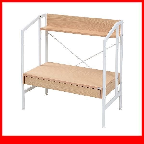 - デスク★ワークデスク パソコンデスク/高さ調整で ハイ ロー 座卓に/棚 引き出し 収納/北欧風/木製 金属製/ホワイト×ナチュラル/限定/a3