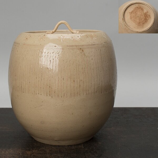 > 【千h1031】簾文 象嵌 水指 江戸時代 尾戸 献上唐津 箱無 茶道具