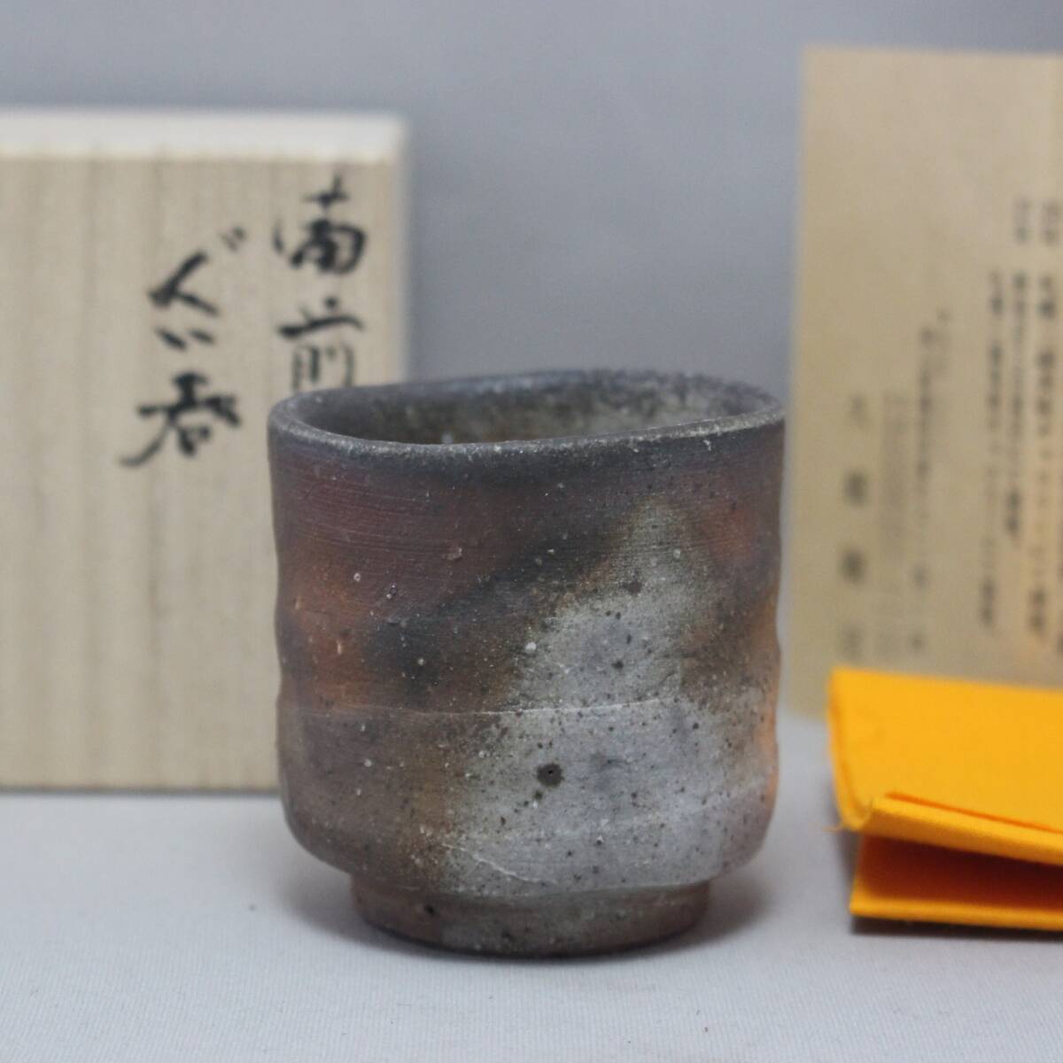 - 備前焼 剛司 作 酒呑 ぐい呑 ぐいのみ 酒器 酒久桟赤 桐箱 新品