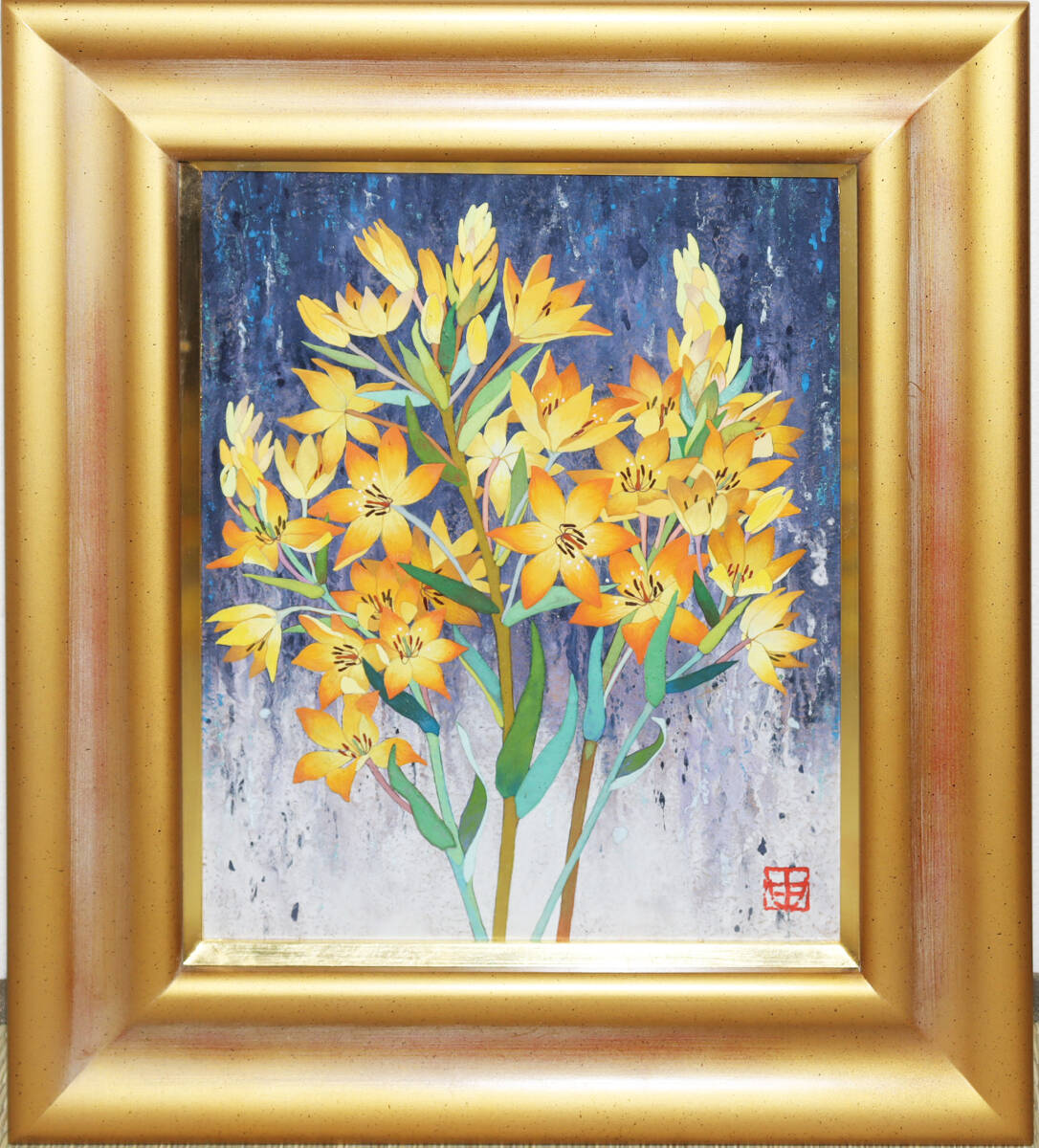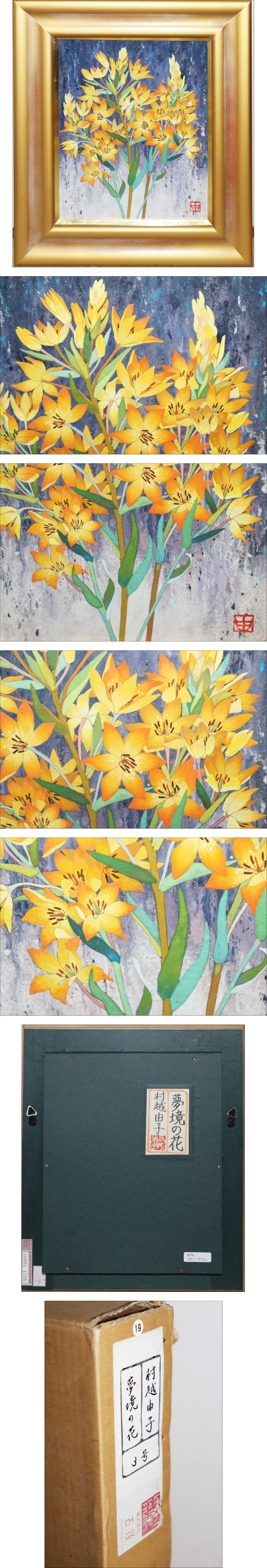 - 真作保証 村越由子「夢境の花」3号 共シール 古径 創画会 多摩美術大学E414