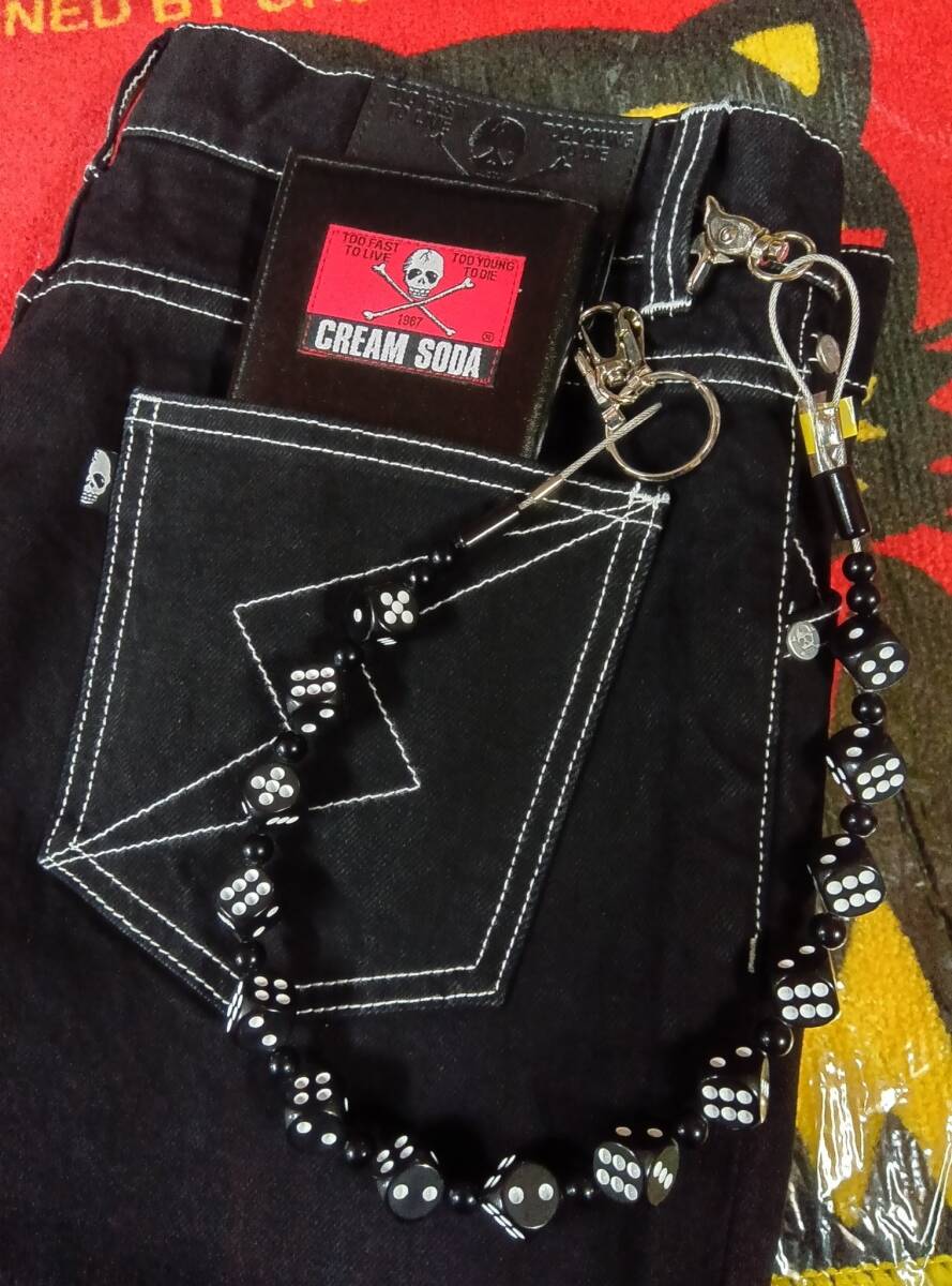- 黒色グッドロッキンカラーダイスウォレットチェーン検索ロカビリーロックンロールブラックキャッツピンクドラゴンラッキーファジーダイス