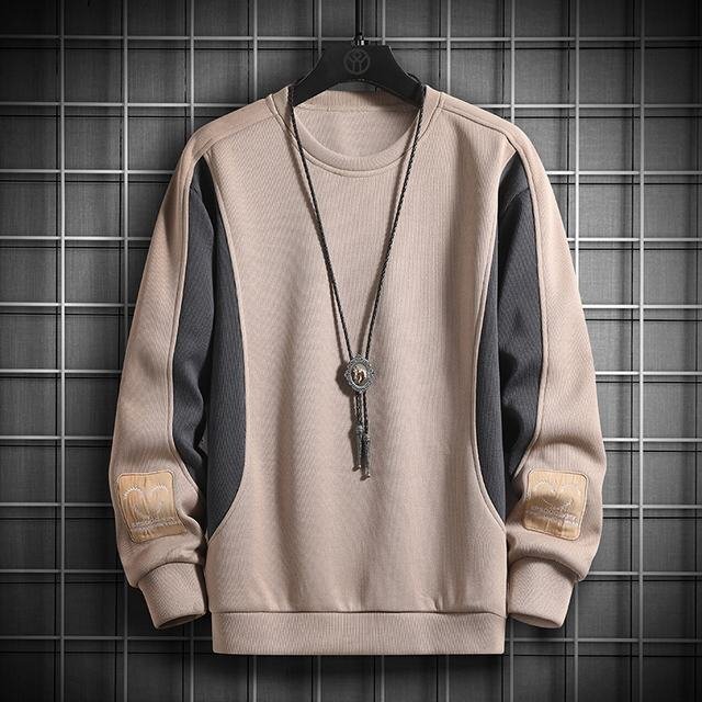 - メンズトレーナー メンズ トップス ロンt 長袖 春 秋冬 インナー スウェット ワッペン カーキ M