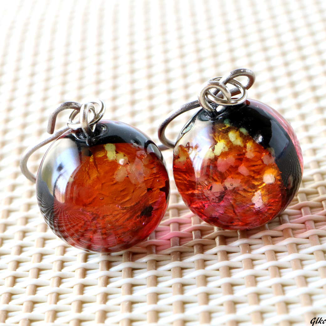 - 【自然の色彩を身につけ、リゾート感や特別感を楽しめる】 ホタルガラスピアス 沖縄アクセ チタンフック 手作り サンセットオレンジ