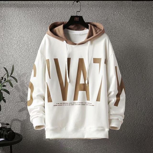 > パーカー メンズ 長袖 トップス プルオーバーパーカー 英字プリント カジュアル フード付き ホワイト 2XL