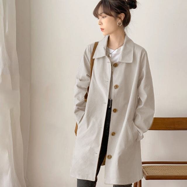 - トレンチコート レディース ジャケット スプリングコート 春コート 春服 ロング丈 折襟 無地 カジュアル A 03 M