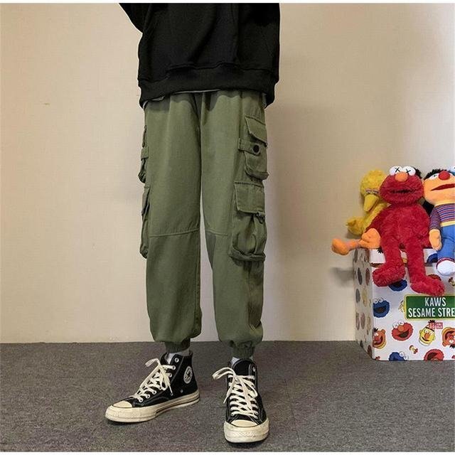 - カーゴパンツ メンズ ミリタリー カラーパンツ チノパン カーゴ ミリタリーパンツ 運動用 無地 ダークグリーン L