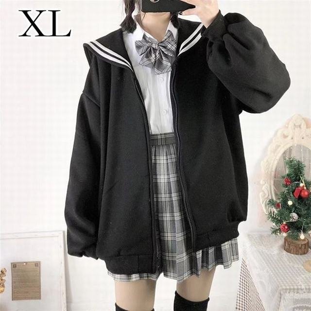 - パーカー セーラー襟 前開き ジップアップパーカー 長袖 トップス セーラー服 スウェット パーカ 暖かい レディース 女の子 xl