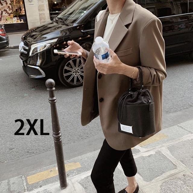 - スーツジャケット レディース 長袖ブレザー 黒/カーキスーツ カジュアル テーラードジャケット ゆったりアウター カーキ2xl