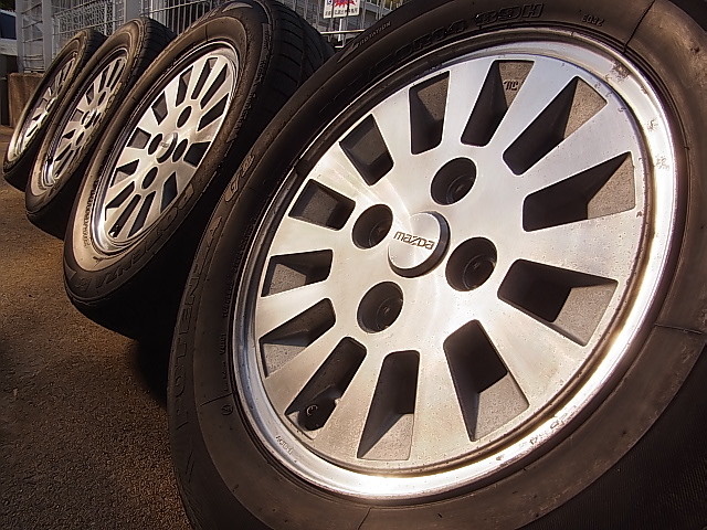 > 絶版希少!! 当時物!! SA22C サバンナ RX-7 後期 ターボ 純正 アルミ ホイール 14×5.5J +40 PCD114.3 4H 4本 純正 ナット 付 MAZDA SPEED