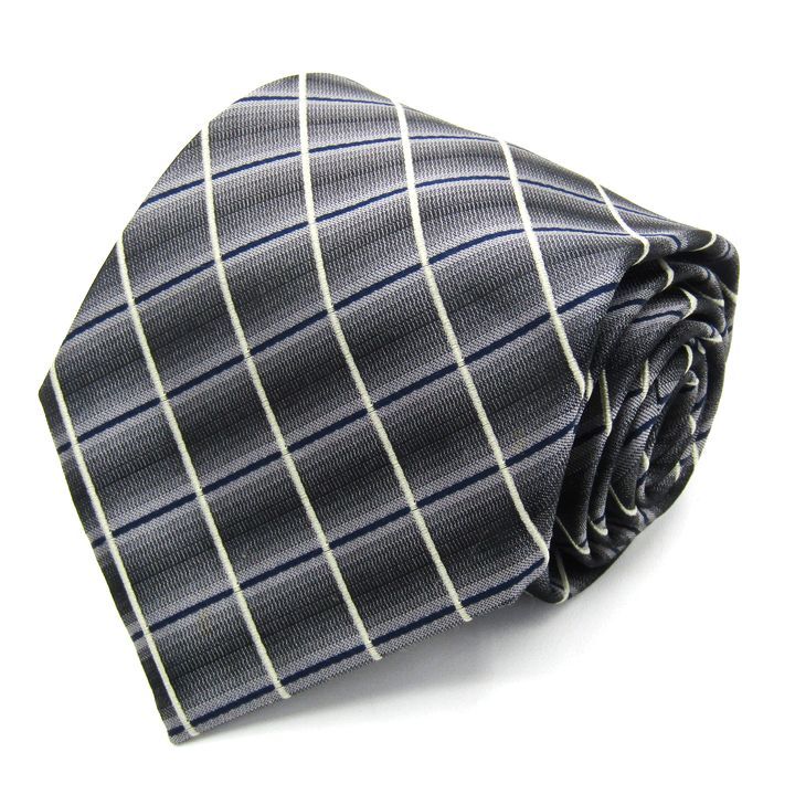 - ヒロココシノ ブランド ネクタイ チェック柄 格子柄 シルク PO メンズ グレー HIROKO KOSHINO