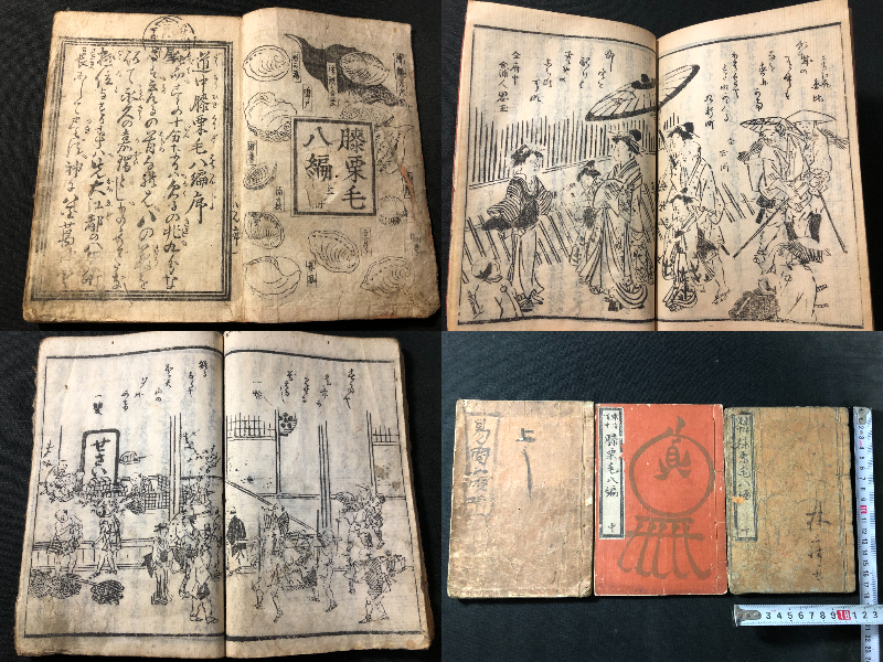 > 7491十返舎一九 滑稽本 絵入5■東海道中 膝栗毛8編■全3冊揃 弥次喜多 道中記 江戸期 木版画 木版 版画 和本 浮世絵 古書古文書骨董古美術