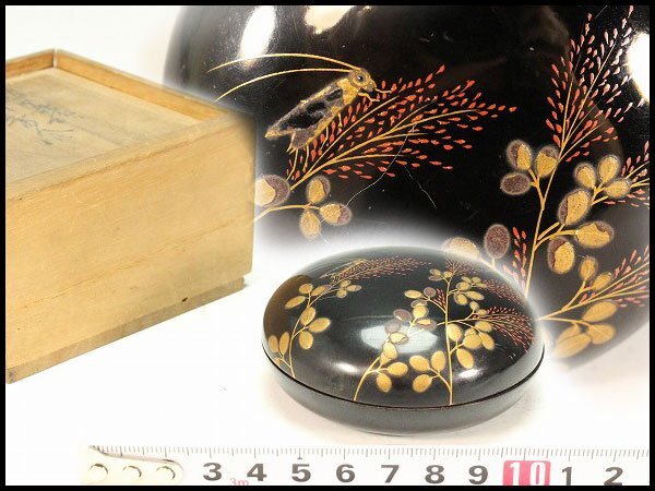 - 【金閣】極上 漆器 青貝貼 秋草虫蒔絵 香合 時代箱 旧家蔵出 送料無料(MB879)