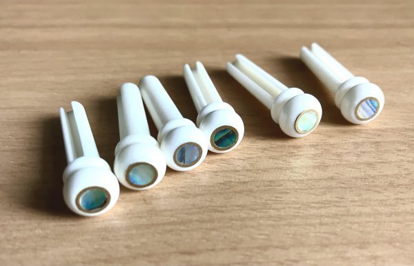 - メール便 よく鳴る 牛骨製 アバロンタイプインレイ ブリッジピン 6本セット ボーントップインレイ シェル ドット アコギ GIBSON J45