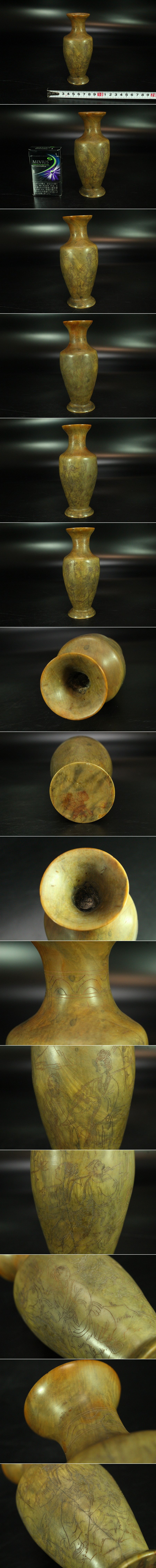 - 【金閣】中国美術 蝋石刻 人物紋 瓶 旧家蔵出 送料無料(Z706)