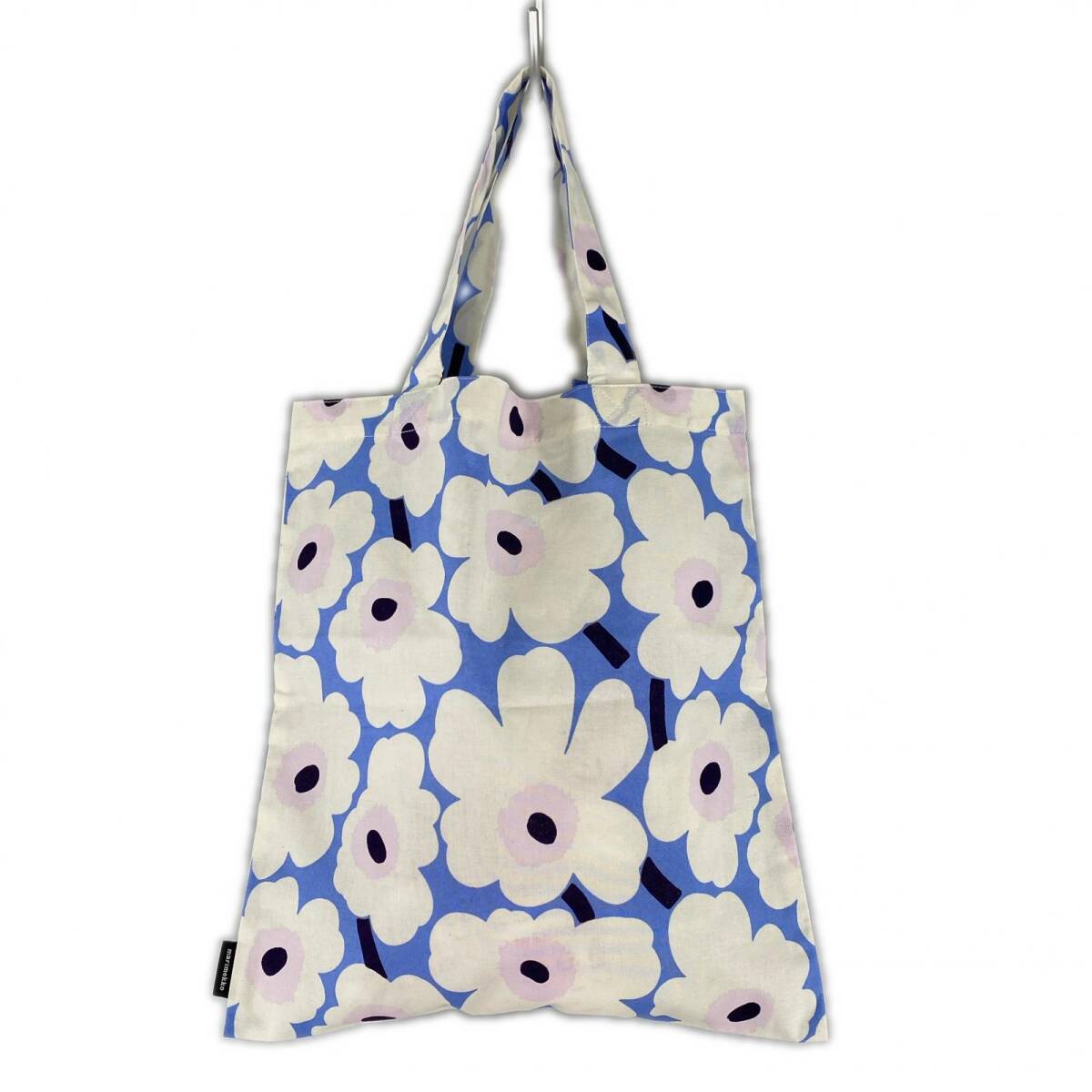 > Marimekko マリメッコ 花柄 エコバッグ/ホワイト×ライトブルー×パープル ゆうパケットOK