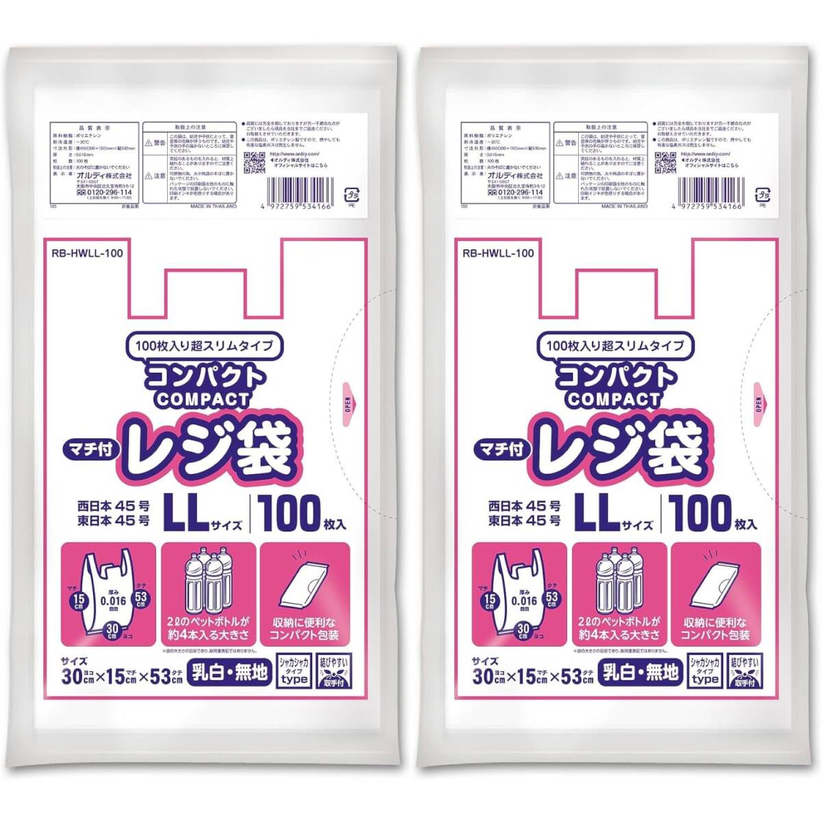 - レジ袋 マチ付き 乳白 LL 100枚入×2個セット 西日本45号 東日本45号 2Lペットボトルが約4本入る大きさ 収納に便利なコンパクトパッ