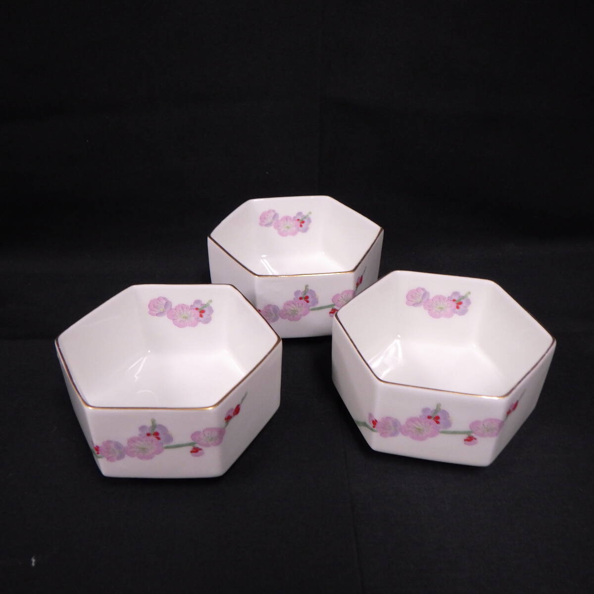 - 深川製磁 宮内庁御用達 紅白梅 小鉢 3客セット