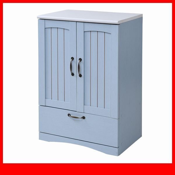 > チェスト★フレンチカントリー/リビングキャビネット 木製キャビネット リビング収納 棚 ラック 姫系/引き出し 扉付き/青 白/ffca-0003/zz