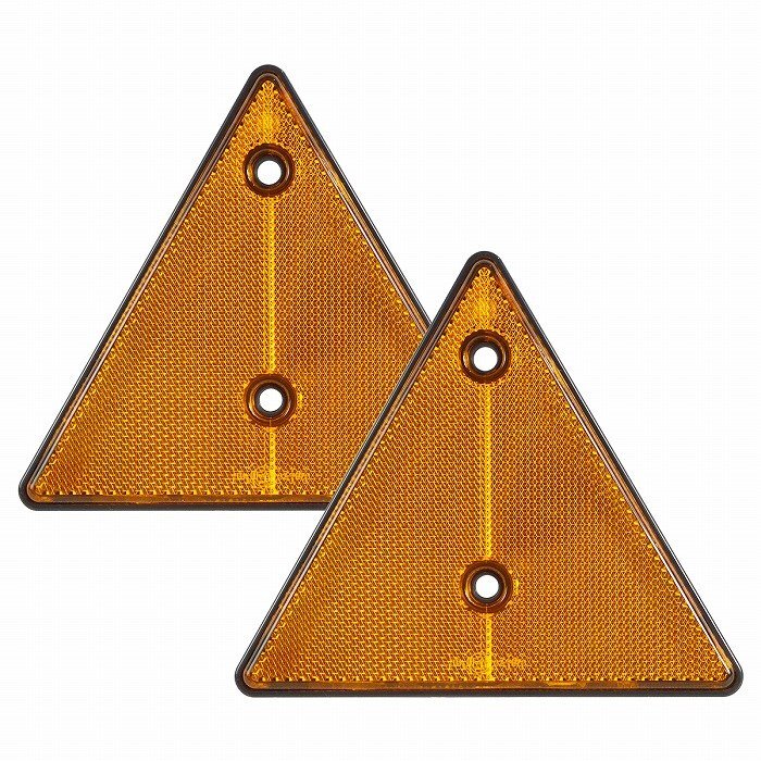 - 2枚 15cm トレーラー トラック 三角 リフレクター 反射板 オレンジ/橙/黄色 テール 小型 中型 大型 重機 除雪車 左右 セット