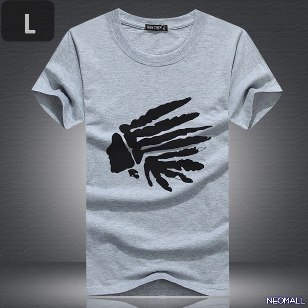- 夏の定番 ☆ 丸首 半袖 Tシャツ【462】 グレー Lサイズ トップス シャツ シンプル イラスト デザイン 春夏