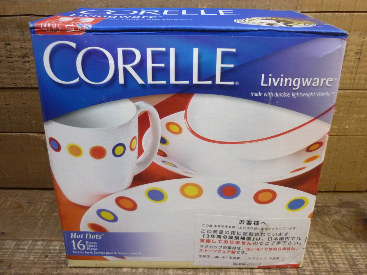 - 未使用 CORELLE コレール リビングウェア HotDots 4種16点セット 割れにくい強化ガラス ポップ 水玉 D16558