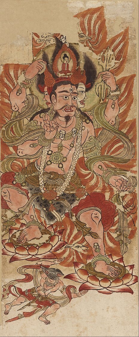 - 敦煌壁画 莫高窟 烏枢沙摩明王像 禅宗金剛像 仏画 仏像 縦幅 供養仏像 絹布 絹本 東洋画 仏教美術 掛け物 未表装