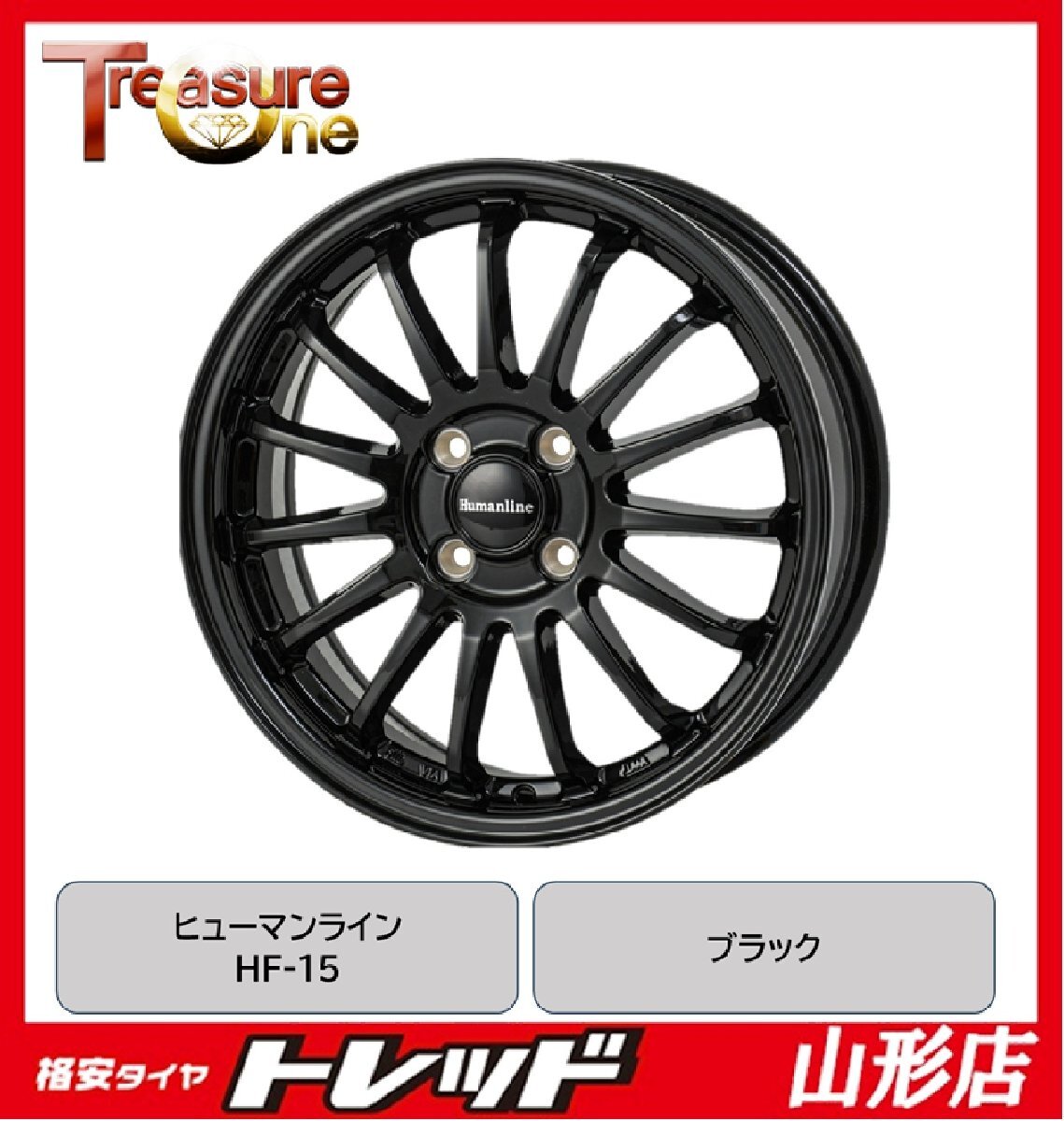 - 山形店【新商品】新品 アルミホイール 4本セット ヒューマンライン HF-15 15インチ 5.5J PCD100 4H +43 ブラック カローラフィールダー