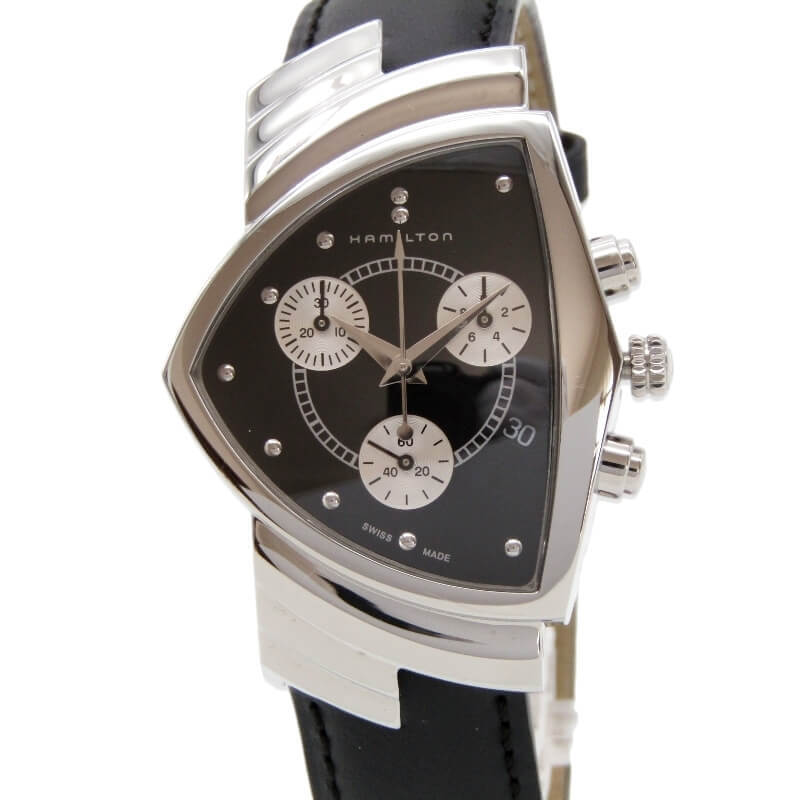 > HAMILTON ハミルトン ベンチュラ クロノ H24412732 クロノグラフ レザー H244121 VENTURA Chrono Quartz シルバー ブラック 28011325