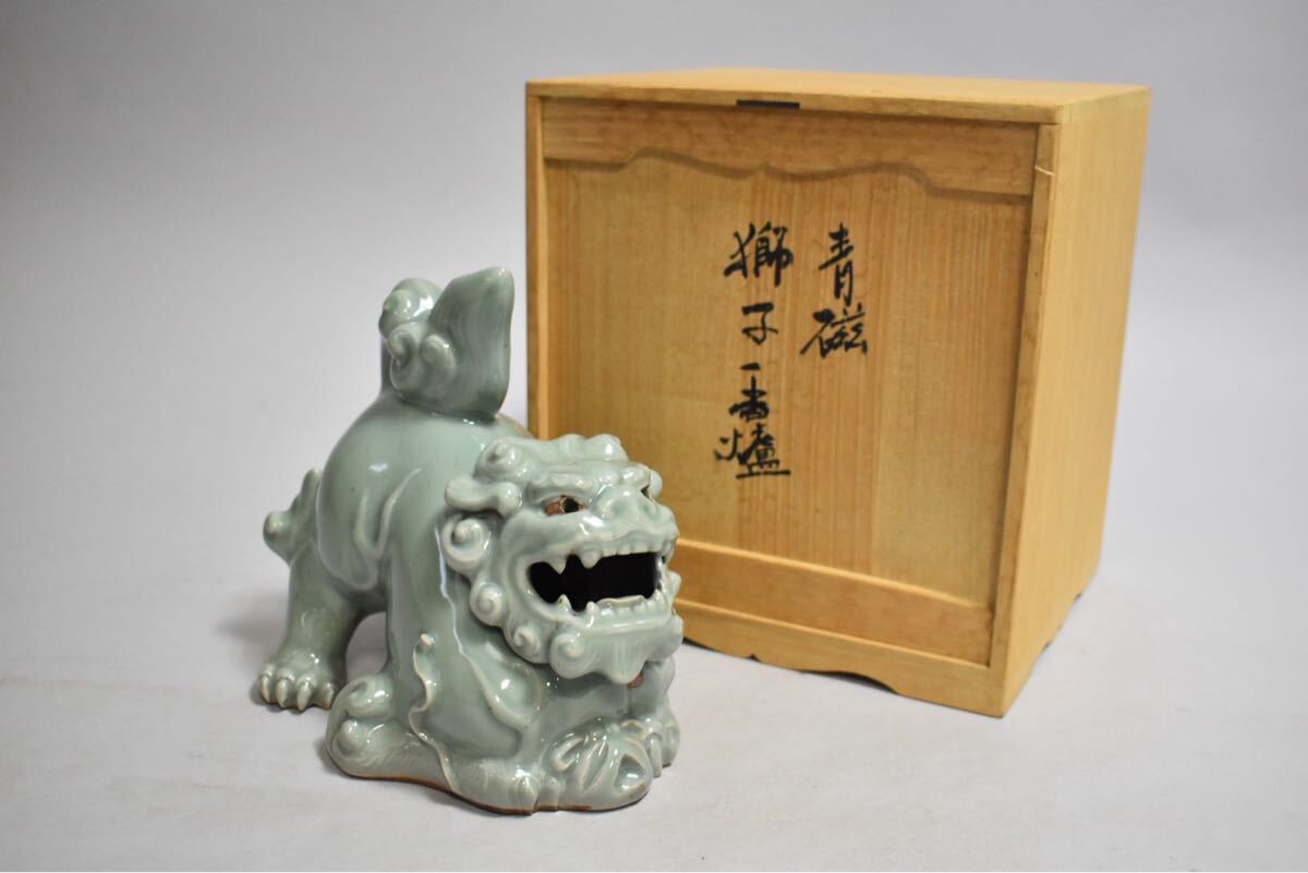 - 【英】A1226 時代 青磁獅子香炉 中国美術 朝鮮 日本 香道具 香爐 置物 青瓷 骨董品 美術品 古美術 時代品 ss