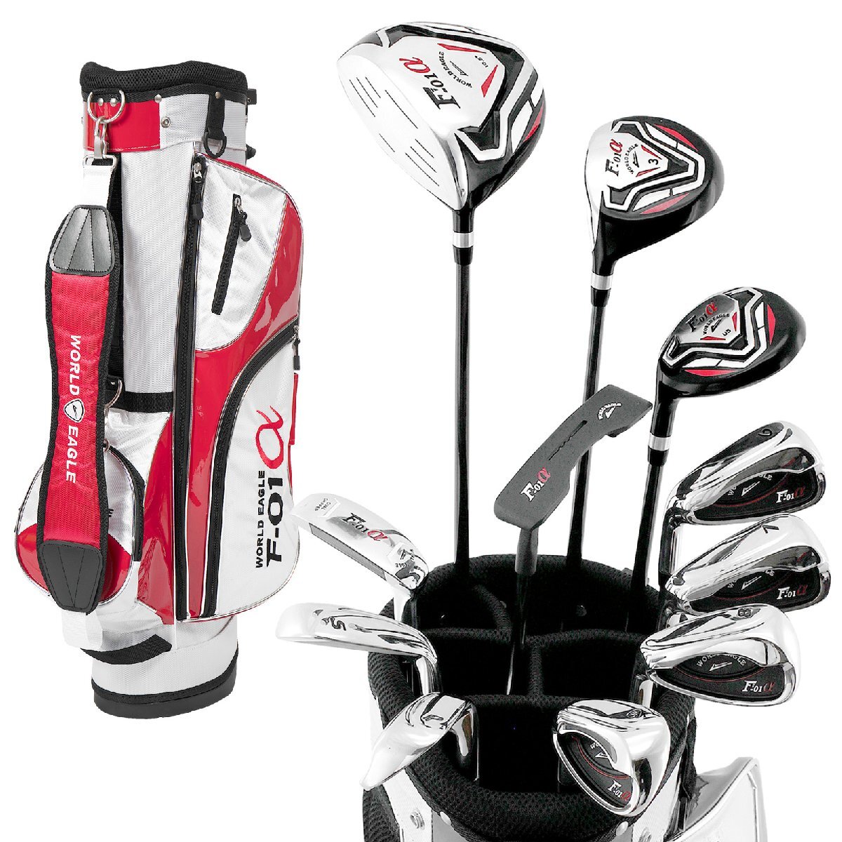- F-01α クロスモデル メンズゴルフクラブセット スタンドバッグ付 左利き用 バッグ:ホワイトレッドカラー/フレックスS[33942]