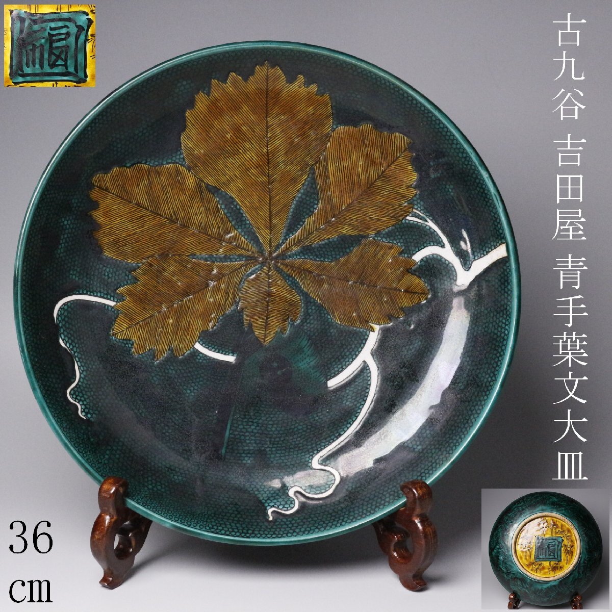 > 【LIG】古九谷 吉田屋 青手葉文大皿 36㎝ 飾皿 角福 古美術品 コレクター収蔵品 [.WI]25.11