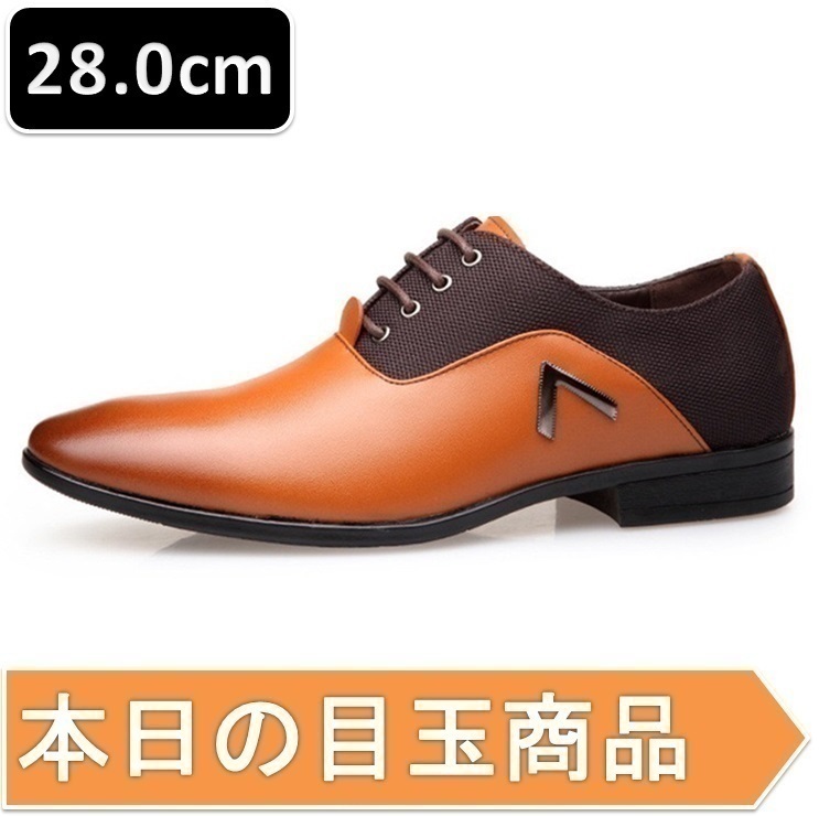 - 本日の目玉 ☆ メンズ ビジネス レザー シューズ ライトブラウン サイズ 28.0cm 革靴 靴 カジュアル 屈曲性 通勤 軽量 【205】