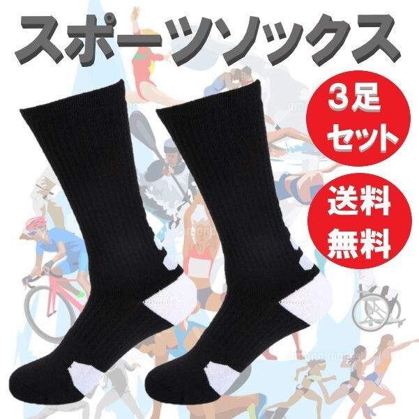 - 送料コミコミ☆ スポーツソックス ブラック×ホワイト 3足セット 中厚地 アウトドア ウォーキング トレッキング メ ンズ 靴下