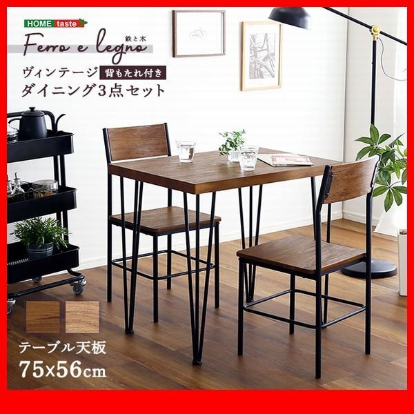 > ダイニングセット★新品/長方形ダイニング3点セット/75cm幅テーブル 椅子×2/コンパクト 木目調/シャビーオーク ウォールナット/zz