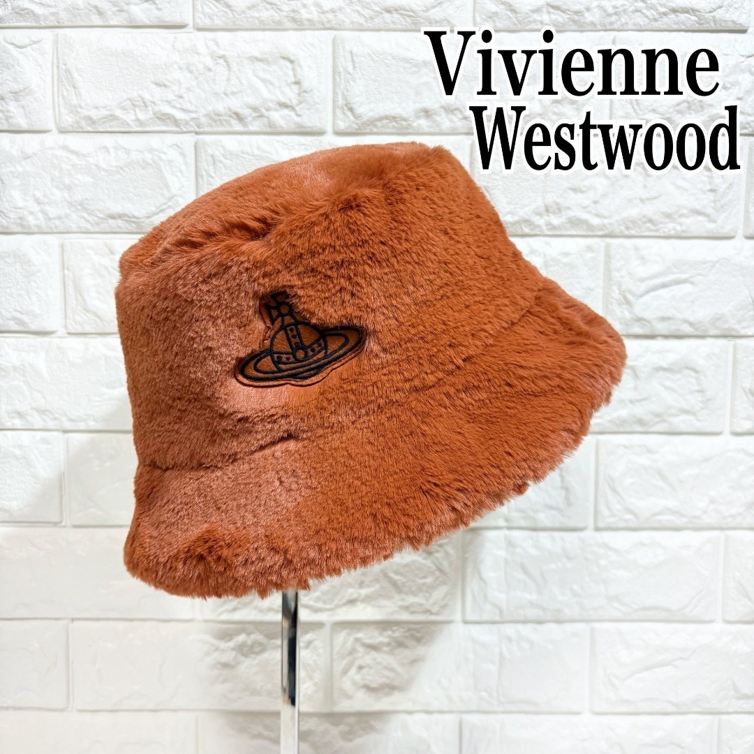 > ヴィヴィアン ウエストウッド エコ ファー バケット ハット オーブ 未使用 タグ付き オレンジ M-S モコモコ 抗菌 防臭 UV 加工 サイズ調整