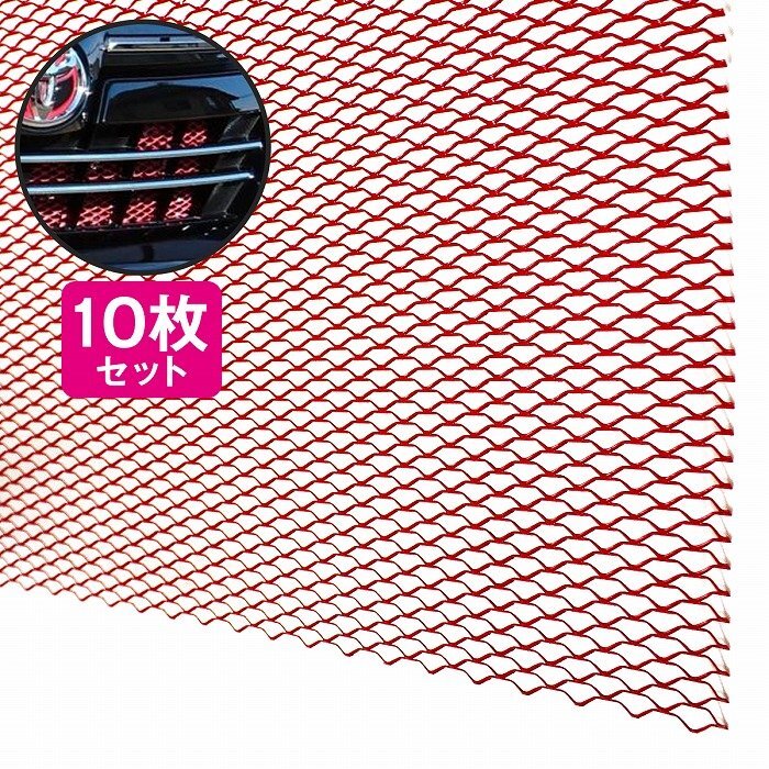 > [10枚] [100cm×40cm] 頑丈 丸まらない アルミ製 メッシュ グリル ネット グリル エアロ 加工 網目20mm×6mm 赤 レッド