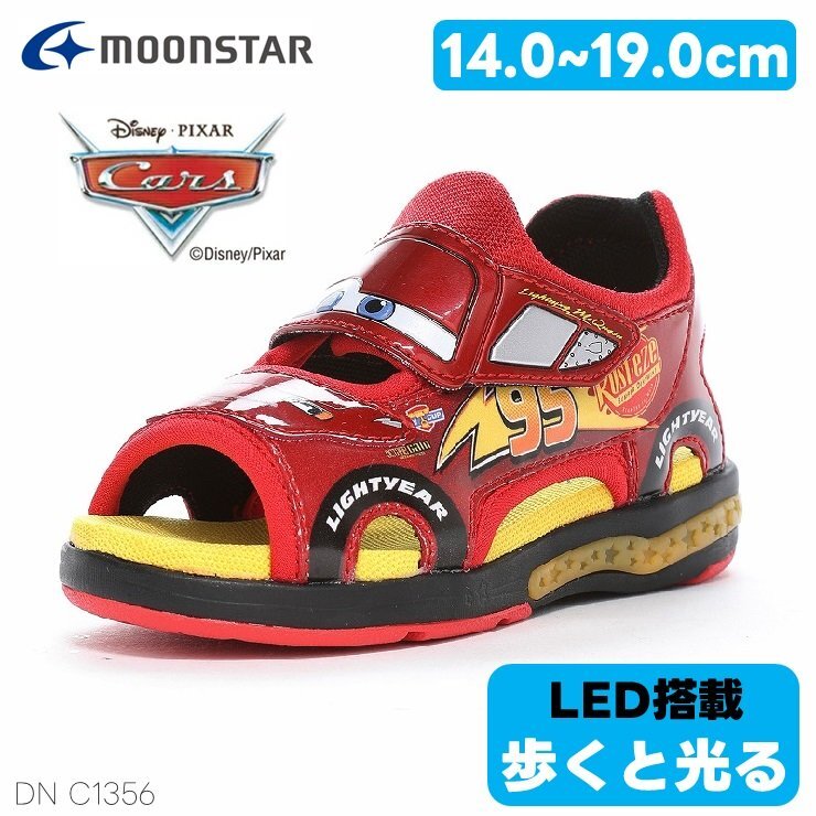 - 新品 未使用 ディズニー カーズ キッズサンダル 光る靴 16.0cm moonstar Disney DN C1356 レッド 光るスニーカー ライトスニーカ