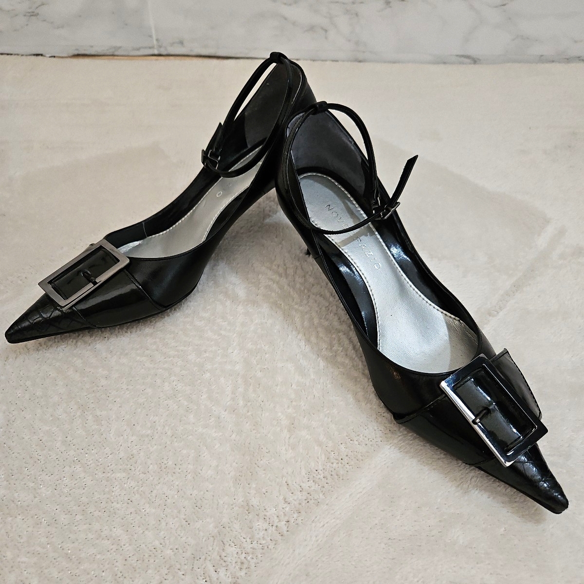 - NOVESPAZIO ノーベスパジオ パンプス ポインテッドトゥ ストラップパンプス ブラック 黒 サイズ23cm かかと若干のすり減りあります
