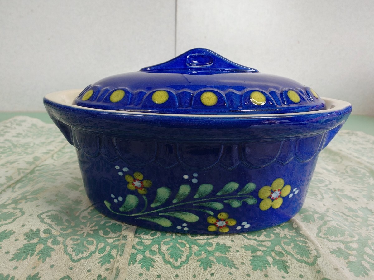- ● BECK FRANCE ベック 蓋付き アルザス陶器 オーバルテリーヌ 希少 ブルー イエロー フラワー カントリー調 デザイン 未使用 保管品 ④