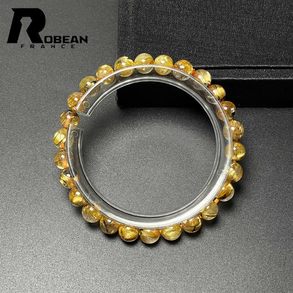 > 夢色 EU製 定価6万円★ROBEAN・太陽花タイチンルチル★黄金針水晶 金運 開運 ゴールド ブレスレット パワーストーン 6.9-7.2mm M0715868
