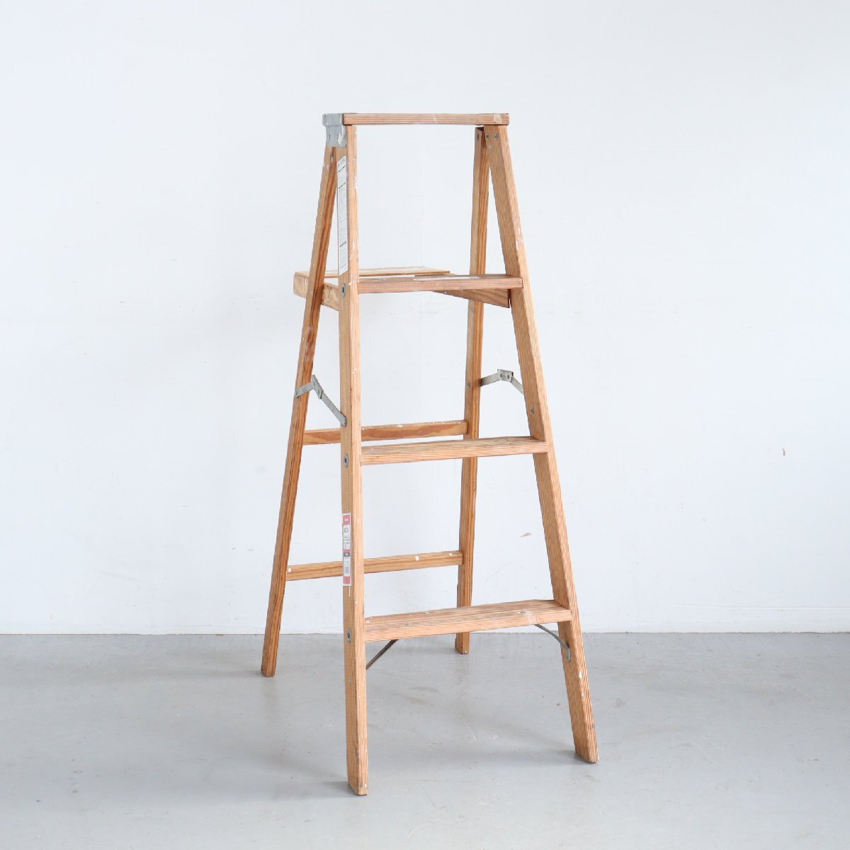 > アメリカ ヴィンテージ 4段 脚立 / 木製ラダー stepladder ディスプレイ 店舗什器 ガーデニング アンティーク 雑貨#702-25-203-24