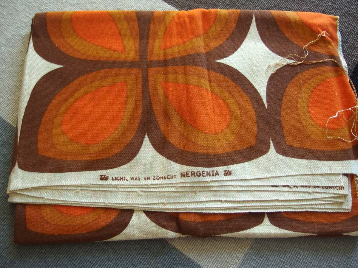 > 新品!オランダ製 ヴィンテージ&レトロ カーテン生地 ファブリック/ハギレ/布地 (ザ!レトロな茶系のモチーフ) 120cmX174cm NERGENTA