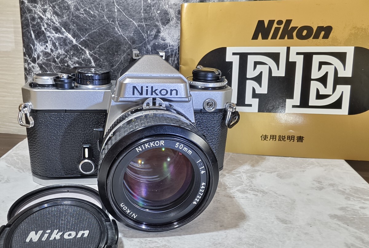 - 【断捨離】Nikon FE 美品+Ai NIKKOR 50mm f1.4 大口径単焦点 各動作良好 露出計メーター良好 レンズ光学良好 取扱説明書 フィルム一眼レフ
