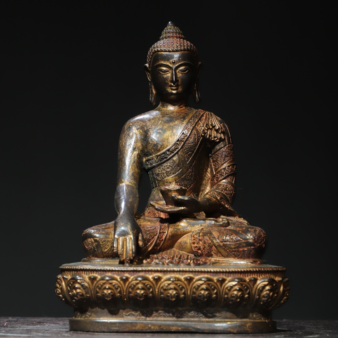 - 旧蔵 古銅彫 泥金 阿彌陀佛 佛像 擺件 古擺件 古置物 中国古玩 骨董品 時代物 稀少唐物