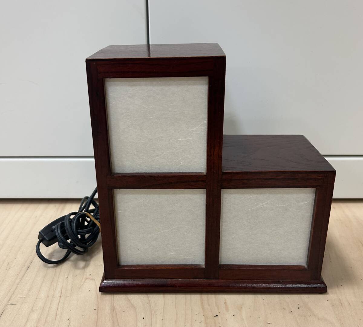 - 【29698】木製卓上ランプ 和紙 古風ランプ ベッドサイドランプ 動作確認済み 中古品 現状品 長期保管品